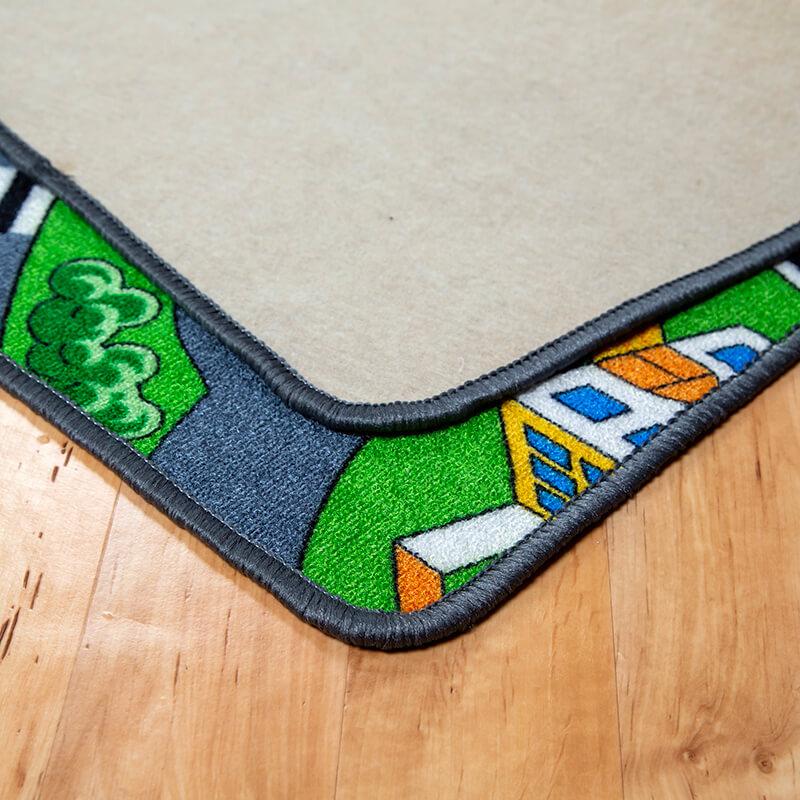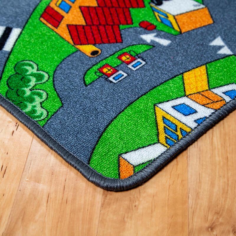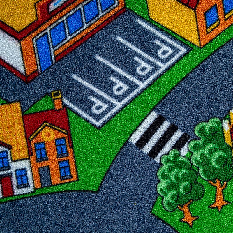120×160 cm-es gyerekszőnyeg, autópályás mintával, strapabíró kivitelben.