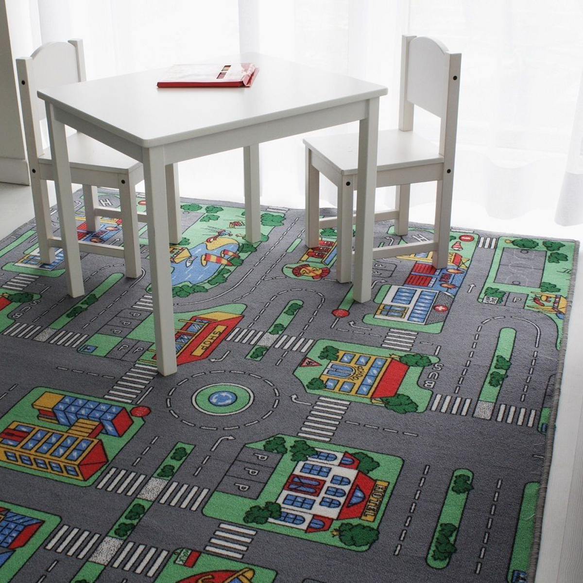 170×200 cm-es gyerekszőnyeg, autópálya mintával, strapabíró kivitelben.