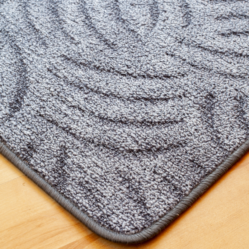 70×120 cm-es scroll (csúcsnyírt) szegett szőnyeg, szürke színben, karmolt mintával, erős kivitelben.