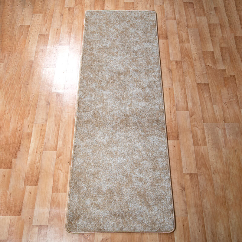 70×200 cm-es nyírt szegett szőnyeg, világos beige színben, filc hátoldallal.