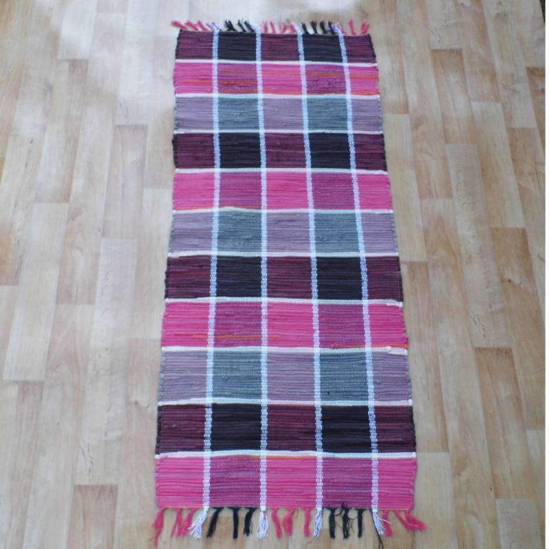 Színes pamut kézi készítésű rongyszőnyeg 60×140 cm-es méretben.