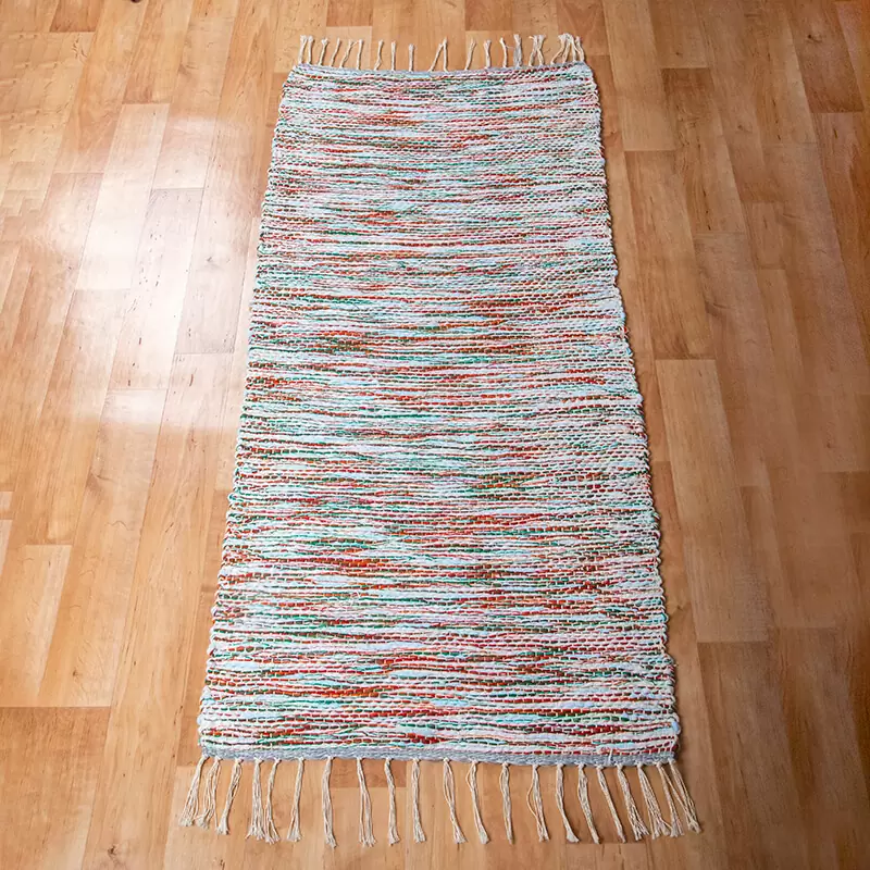 Színes pamut kézi készítésű rongyszőnyeg 60×140 cm-es méretben.