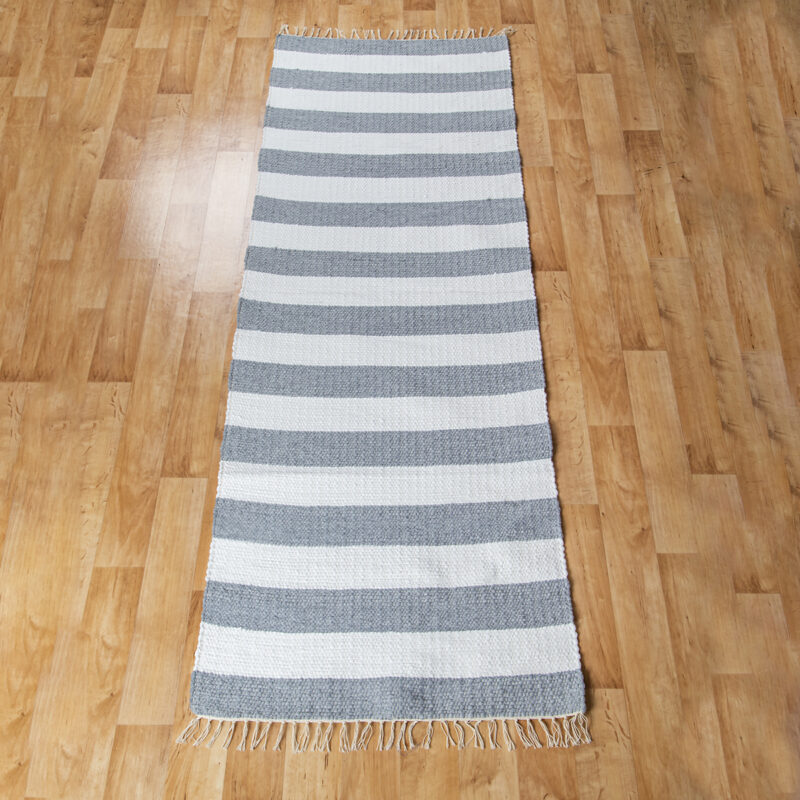 Szürke kézműves rongyszőnyeg 70×200 cm-es méretben.